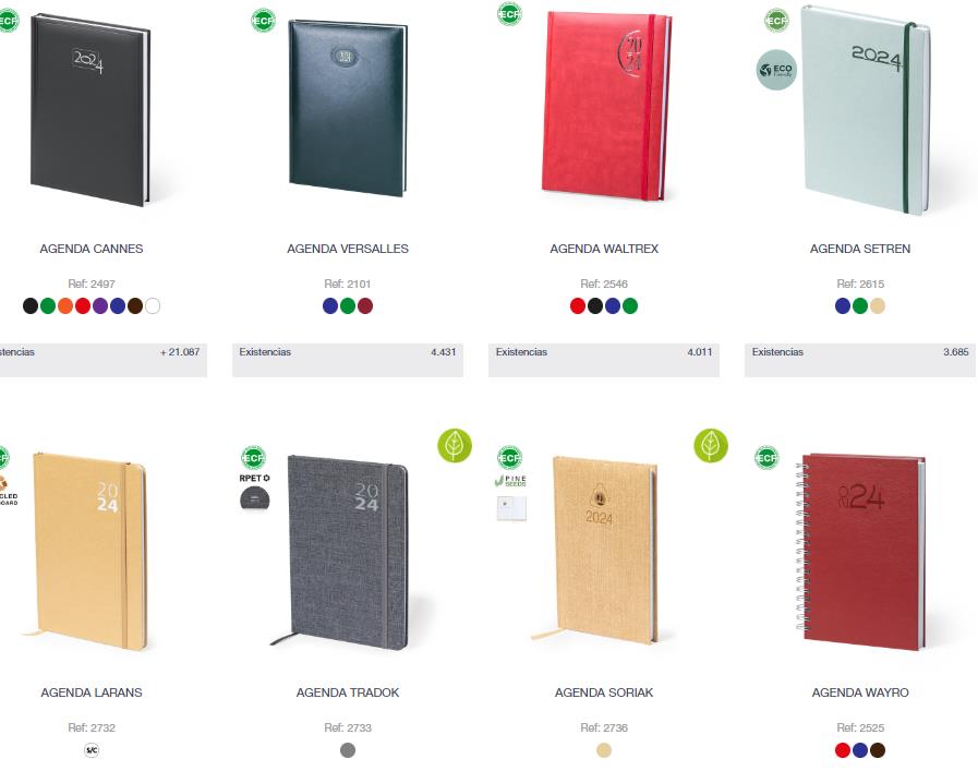 Dispone de más de 15 modelos de cuadernos y agendas disponibles, en varios tamaños y colores |